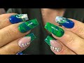 ACRYLIC NAIL TUTORIAL | GREEN & BLUE DESIGN